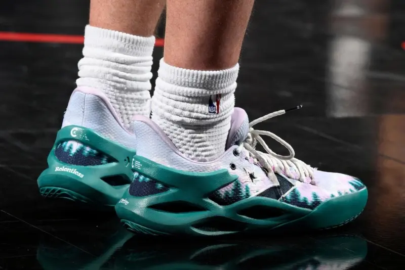 比赛中,普里查德上脚个人专属俄勒冈配色Converse All-Star BB Trilliant CX PE。